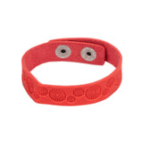Stamped in a whimsical daisy pattern, a dainty red leather band wraps around the wrist for a seasonal flair. Features an adjustable snap closure.
